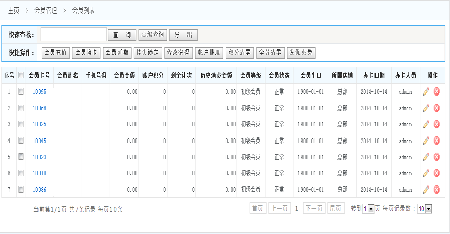 五通一卡通云會(huì)員管理系統(tǒng)會(huì)員列表