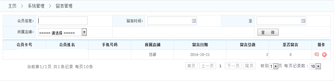 1.查詢留言:可以根據(jù)時間段或者店鋪或者會員 來查找留言