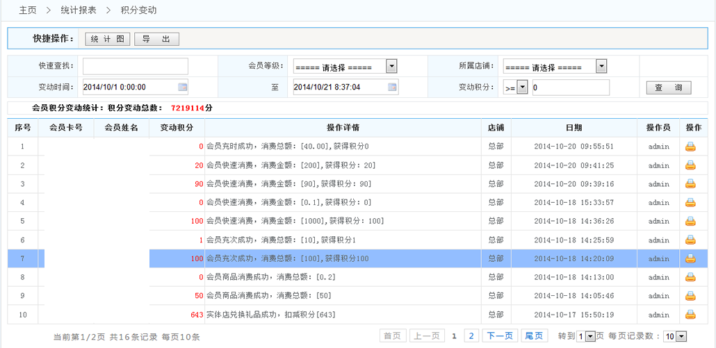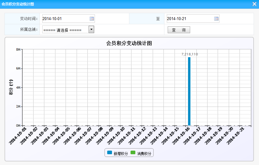 3.會員積分變動統(tǒng)計:將統(tǒng)計在滿足設(shè)定的條件下的所有變動的概況