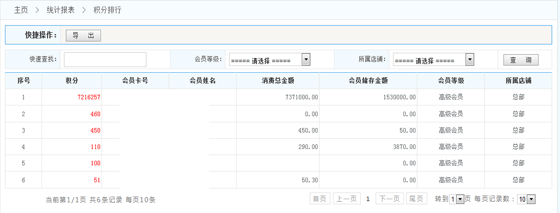 五通一卡通云會(huì)員管理系統(tǒng)積分排行統(tǒng)計(jì)