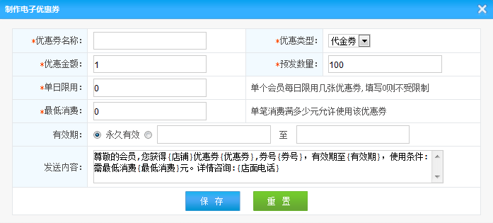 有效日期:可以使長久有效,也可單獨(dú)設(shè)置時(shí)間段
